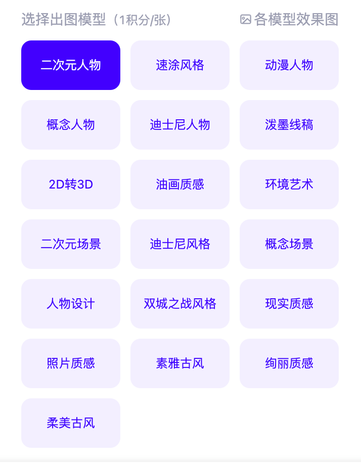 可以选择出图风格、规定人物动作画面构图等。