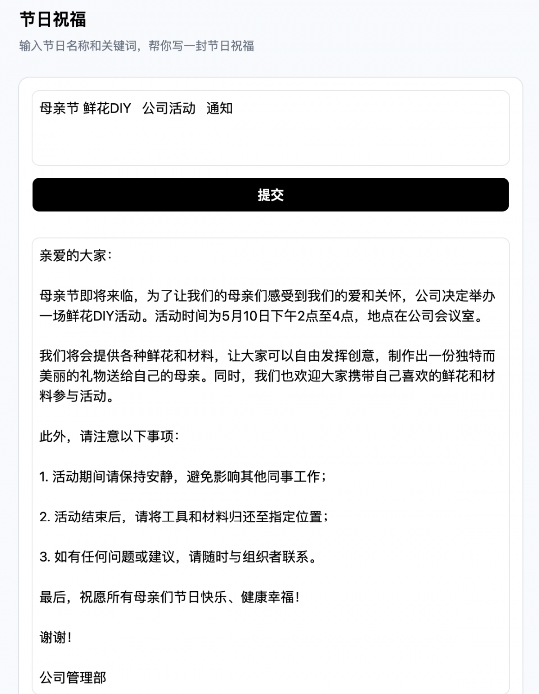 输入更多关键词后,还能给出一个定制版的通知版本?。
