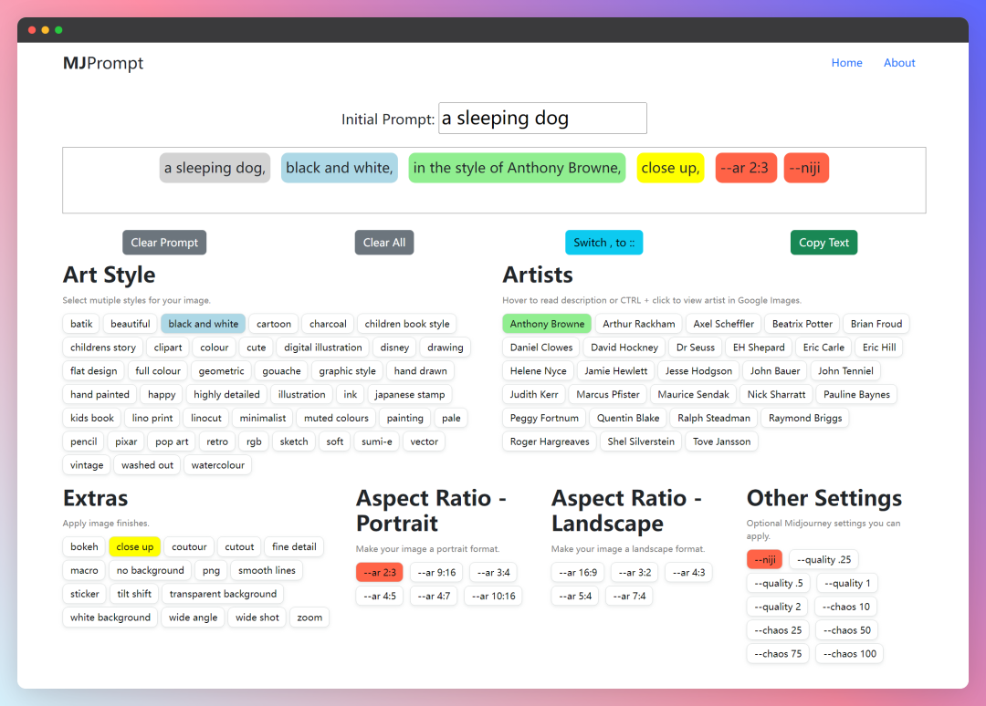 网址:https://promptomania.com/midjourney-prompt-builder/