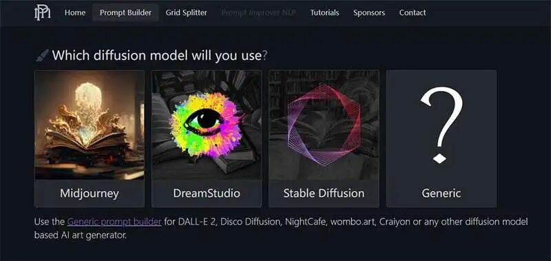 支持多种扩散模型:可以在菜单中选择不同的扩散模型,如CF Spark, Midjourney, Stable Diffusion等,也可以使用通用的提示生成器来适配其他的扩散模型,如DALL-E 2, Disco Diffusion等。