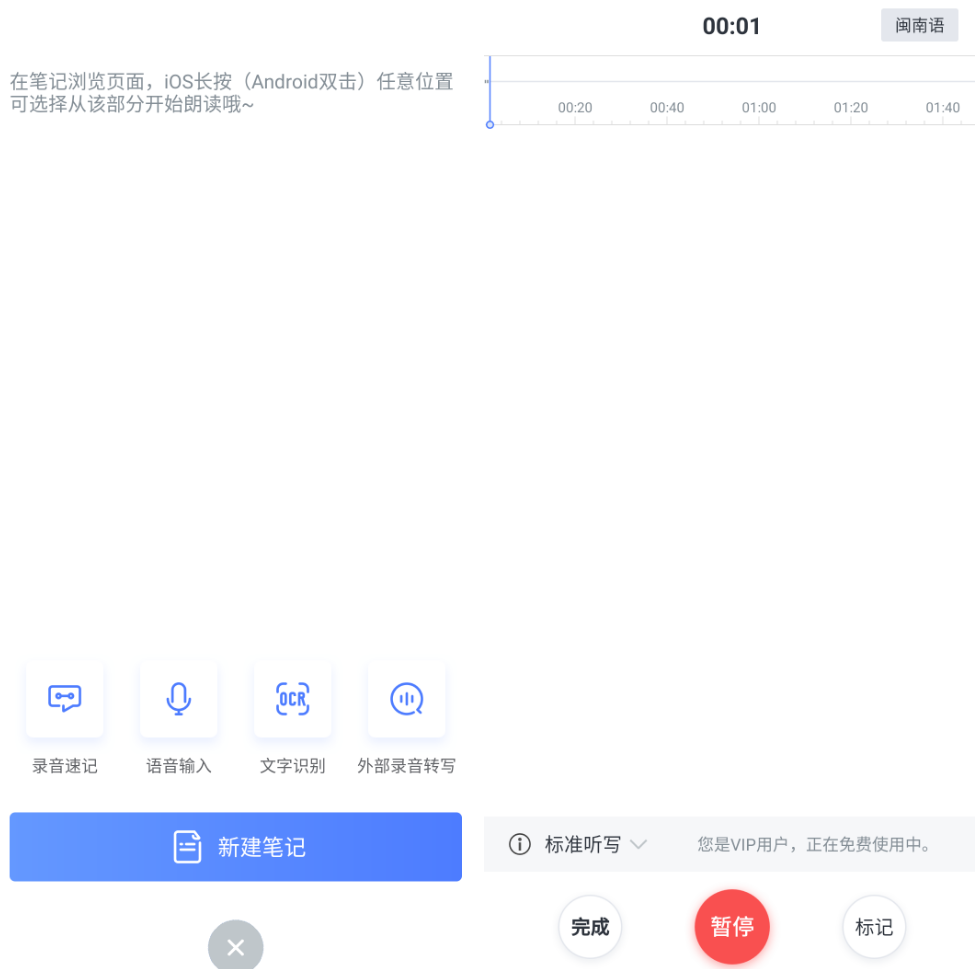 打开录音速记,可以看到速记的标志,听写旁边写的是VIP用户,给大家推荐的是解锁版本,只要登陆就可以了。不过,这里仅仅支持标志听写,也能够应付大多数的场景了。