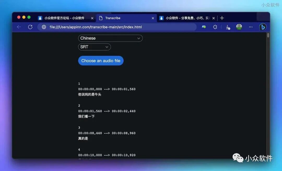 这个项目名叫 transcribe,实际上它只有三个文件:index.html、index.js、style.css,只需要下载、解压缩,将index.html拖到浏览器里就能用: