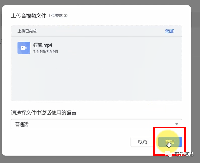 点击「转写」