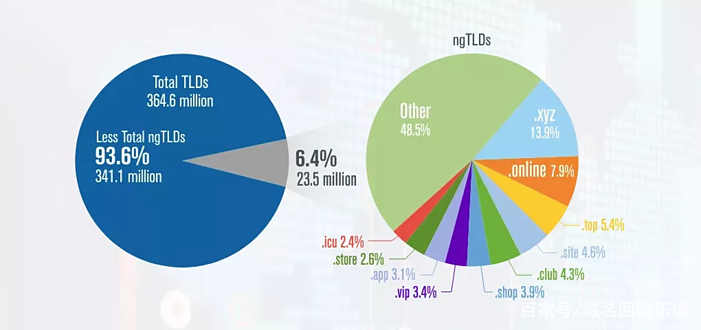 据图表显示,新顶级域名中注册量最大的前10位分别是:.xyz、.online、.top、.site、.club、.shop、.vip、.app、.store、.icu;