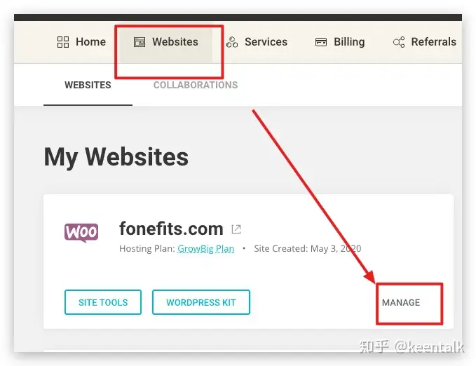 首先,进到sg后台找到dns,进入sg后台的Websites,选择对应域名下的Manage。