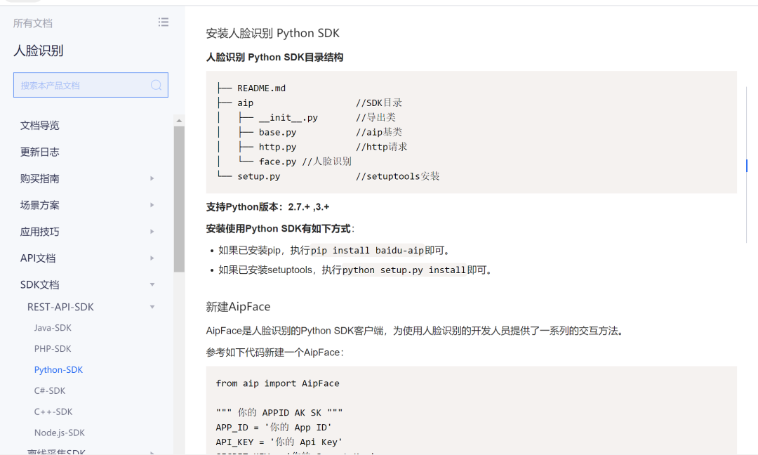 AipFace是人脸识别的Python SDK客户端,为使用人脸识别的开发人员提供了一系列的交互方法。
