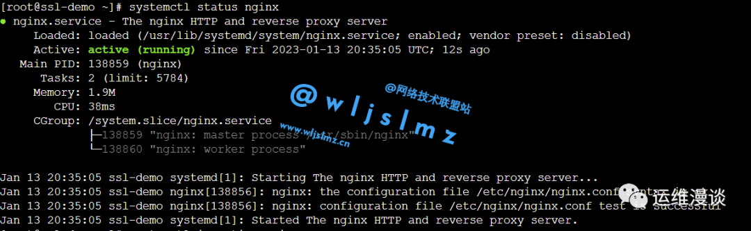 systemctlenable--now nginx可以通过检查其状态来验证已启动的 Web 服务器。