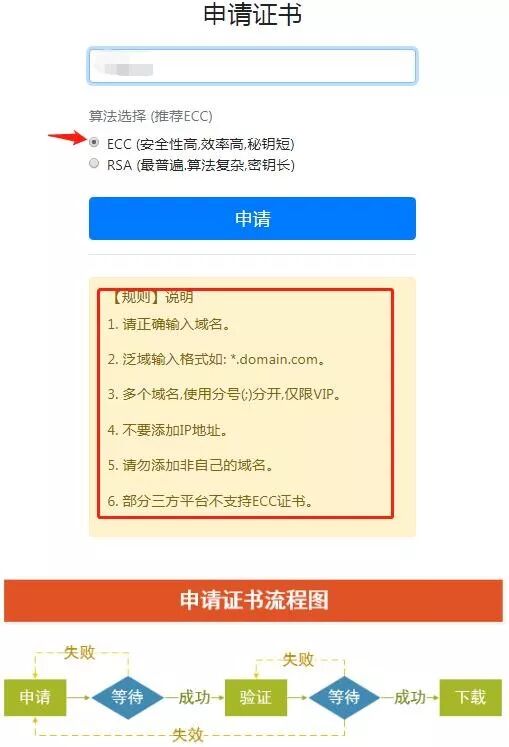 3.2、输入要申请的域名,下面有申请规则提示,自行浏览。