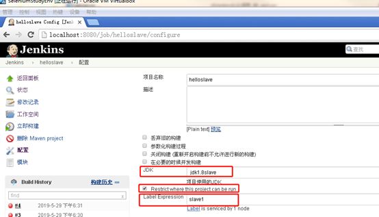 Master节点上打开Jenkins管理控制台新建项目,代码仓库/构建策略/构建前步骤/构建后步骤和普通项目一致,仅需要指定Slave任务分配策略。此处通过节点的label标签来关联节点,强制指定节点在slave1标签上运行,一个标签可以关联多台不同命名的slave机器。