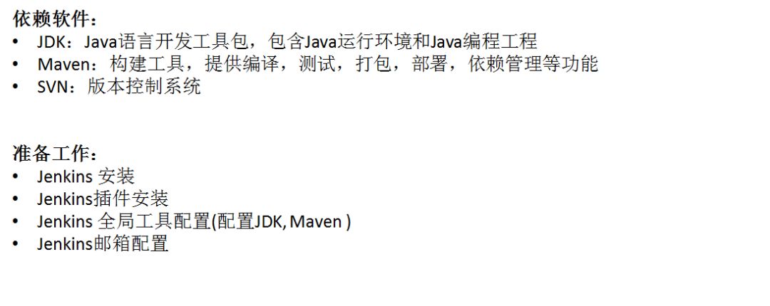 Master节点上安装配置Jenkins和单机安装配置Jenkins步骤一致,需要预先安装如下依赖软件和完成如下配置