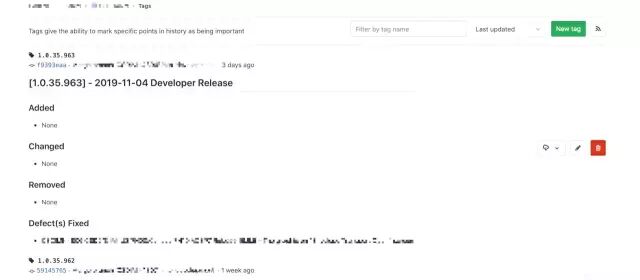 自动创建一个TAG且有CHANGELOG: 因为我们通过git tag创建的TAG一般是没有描述的,有时候比较难跟踪,所以我们可以调用Gitlab/Github API来创建一个TAG,效果如下:
