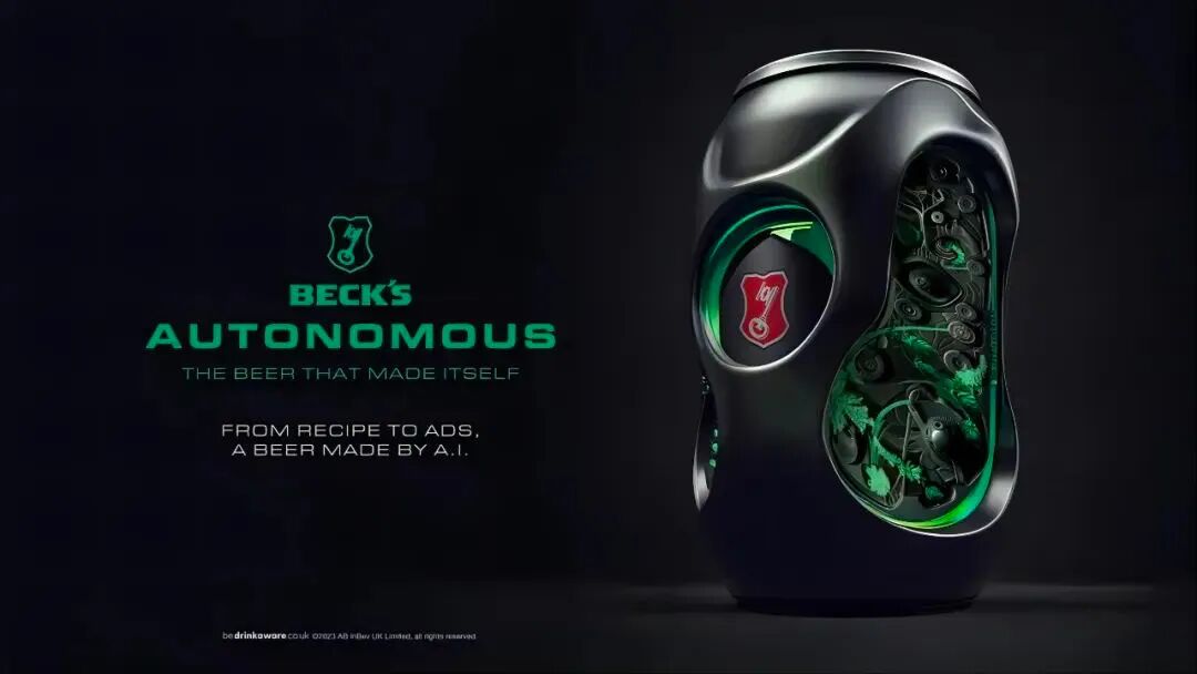 为庆祝Becks品牌的150周年,这个德国啤酒品牌推出了一项完全由AI驱动的完整营销活动。从构思到完成,Becks Autonomous完全由AI技术设计,作为重新发明酒类营销独特新实验的一部分,AI甚至被委托创造这款啤酒的全新配方——从数百万个不同的口味组合中提取。