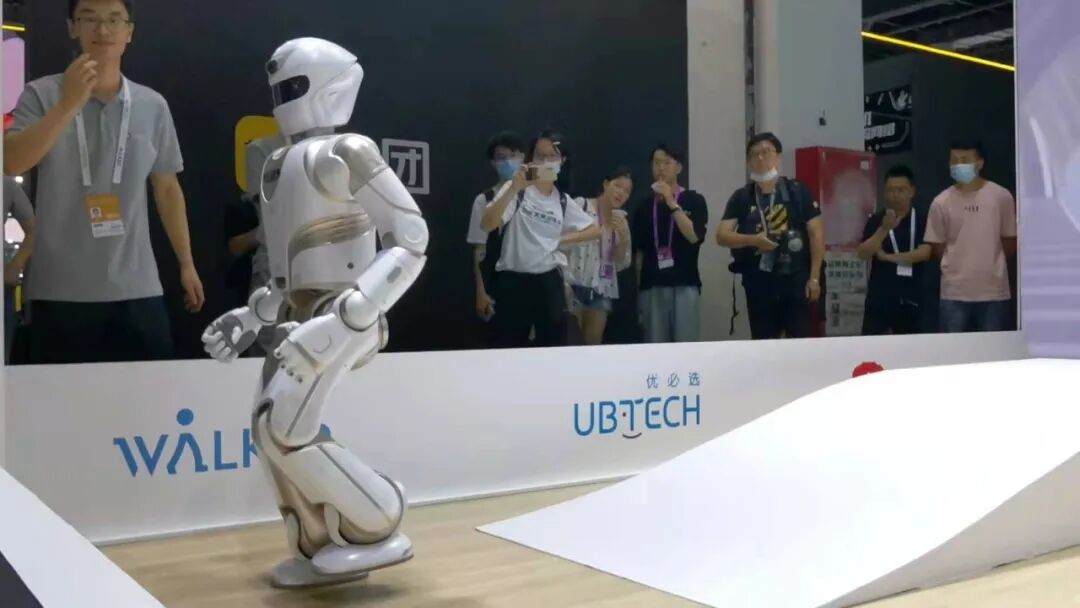 来自深圳优必选科技有限公司全新一代仿人服务机器人X是这次展厅的明星,仿真人、像人一样交替双腿行走,可适应地形上坡、上楼梯,还能用双臂给人捶背和观众下象棋。据优必选科技Walker产品负责人谢铮介绍,Walker X集六大AI技术于一身,定位家庭服务机器人,可以完成端茶、倒水、递物、浇花、擦桌子等家庭服务,还能自主操控冰箱、吸尘器等家电。