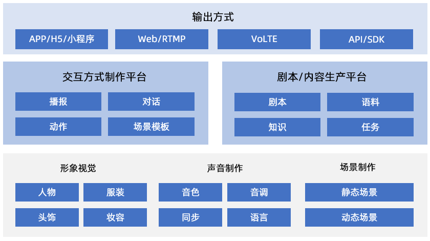 从实际体验来看,内容运营服务也有两种:一种是提供工具,即配套提供SaaS/PaaS的AI视觉与动作创作、文字与语音合成、视频制作编辑工具,然后提供内容下载、视频推流或SDK/API方式,嵌入到场景方的终端运营平台里面去;还有一种是内容运营外包,提供素材采集、内容制造、直播或录制、然后内容发布上线一揽子人力服务。