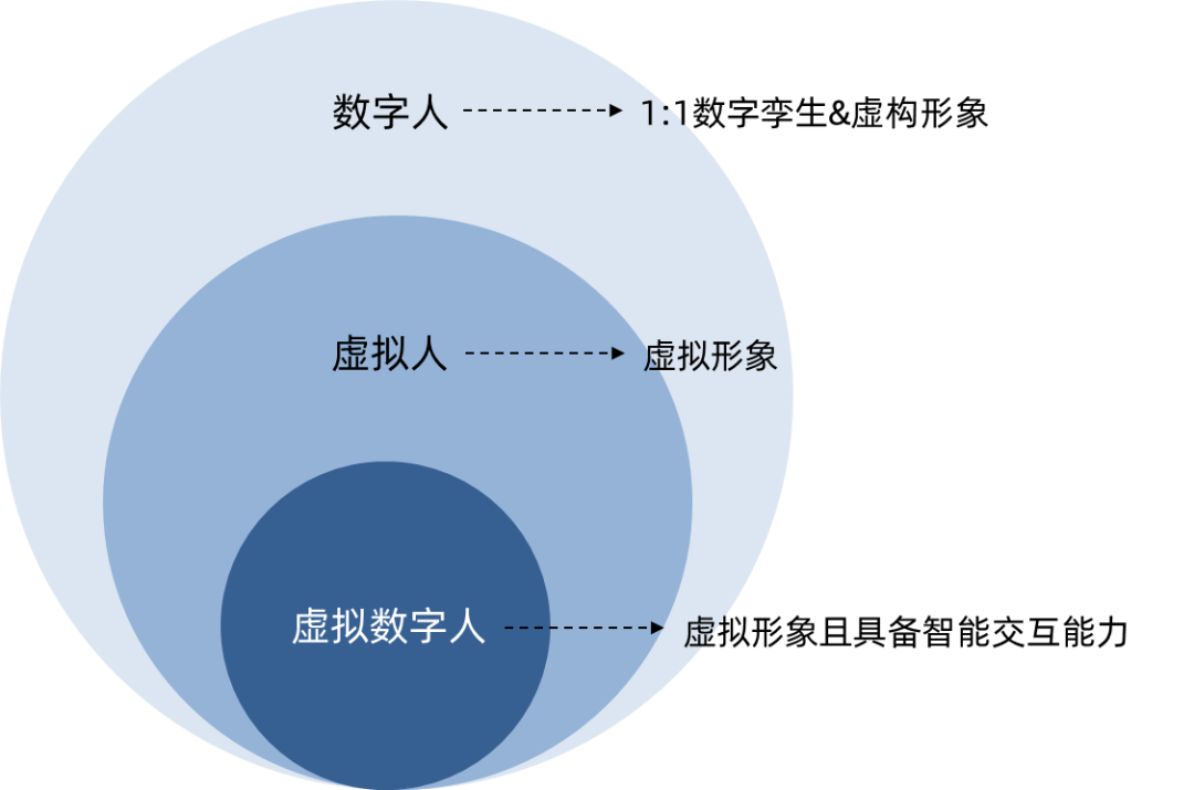 按照券商研究所的分类,数字人、虚拟人和虚拟数字人形成包含关系: