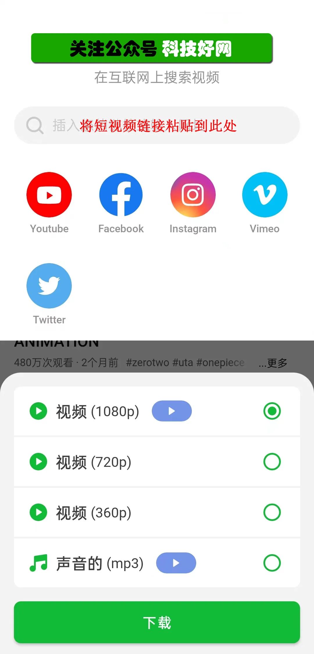 目前短视频下载软件支持TikTok平台,Youtube平台,Facebook平台,Instagram平台,Vimeo平台,Twitter平台等更多短视频平台