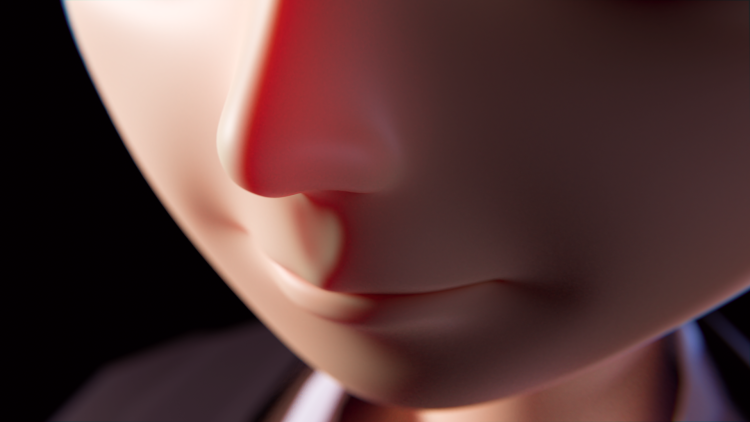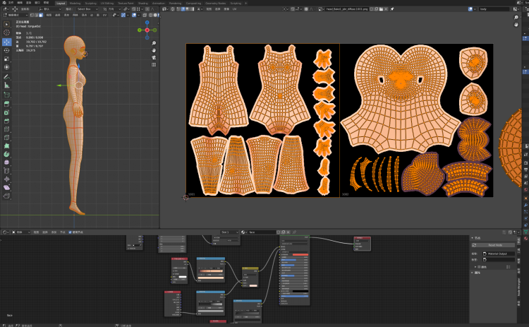 为了避免制作贴图时每一步都需要绘画的痛苦,我们求助于Blender强大的材质节点编辑器,我们通过添加一些顶点色并添加一些次表面散射来完成角色的皮肤着色。