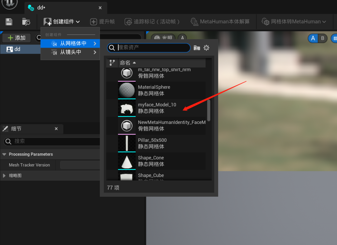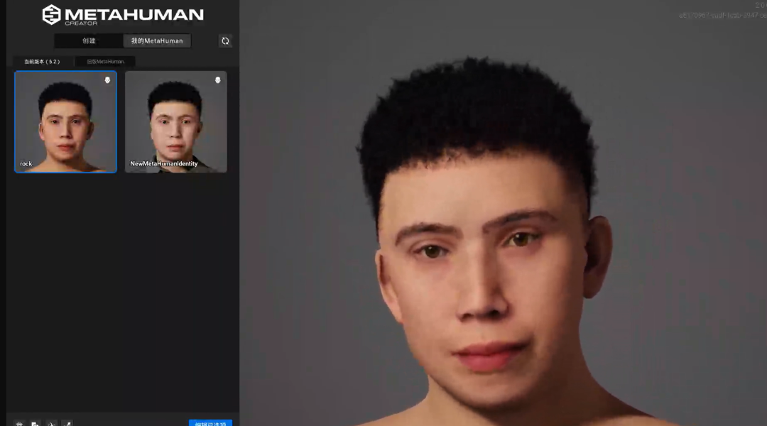 最后点击网格体转MetaHuman,经过这些处理后,所有的模型数据全部都上传到MetaHuman后端的数据库了。