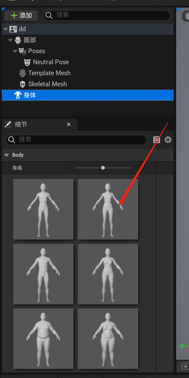 点击身体,选择一个预设身体(本次教程只考虑脸部扫描)