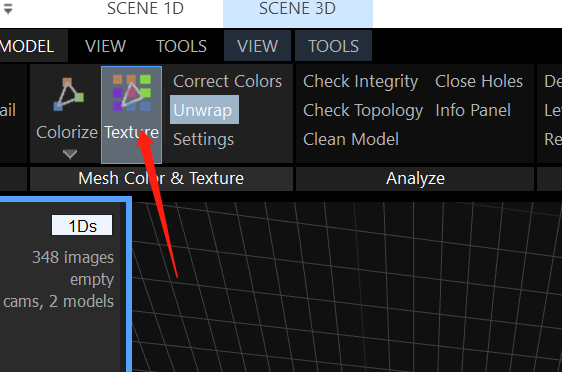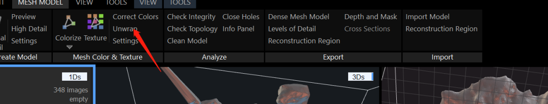 点击(Unwrap)展开模型UV,最后点击Mesh Color & Texture的(Texture)就能完成纹理贴图了。