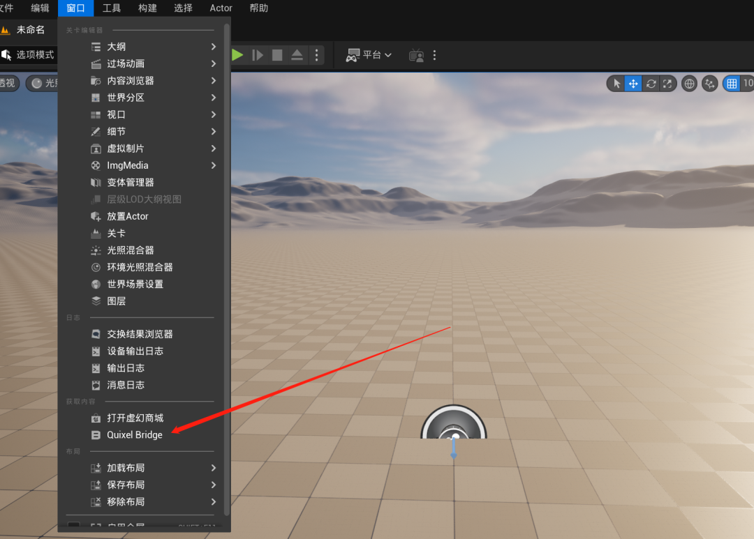 当我们创造好自己的数字虚拟人之后,保存一下。此时我还需要把模型从MetaHuman后端给搬回来,回到UE5,点击窗口--Quixel bridge。