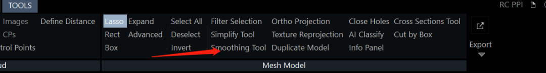 此时我们再仔细观摩一下目前的模型,我们可以很轻易看见,模型表面坑坑洼洼,不平整。在这样的模型中嵌入纹理,最终成品效果很差,所以我们还需要对坑洼的表面进行smooth处理,点击(Smoothing Tool)对模型进行抛光处理。