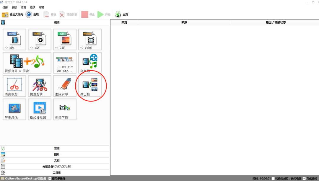 当录制好面部视频后,我们还需要将面部视频转换成帧图片,这个时候必须要用格式工厂来实现啦。