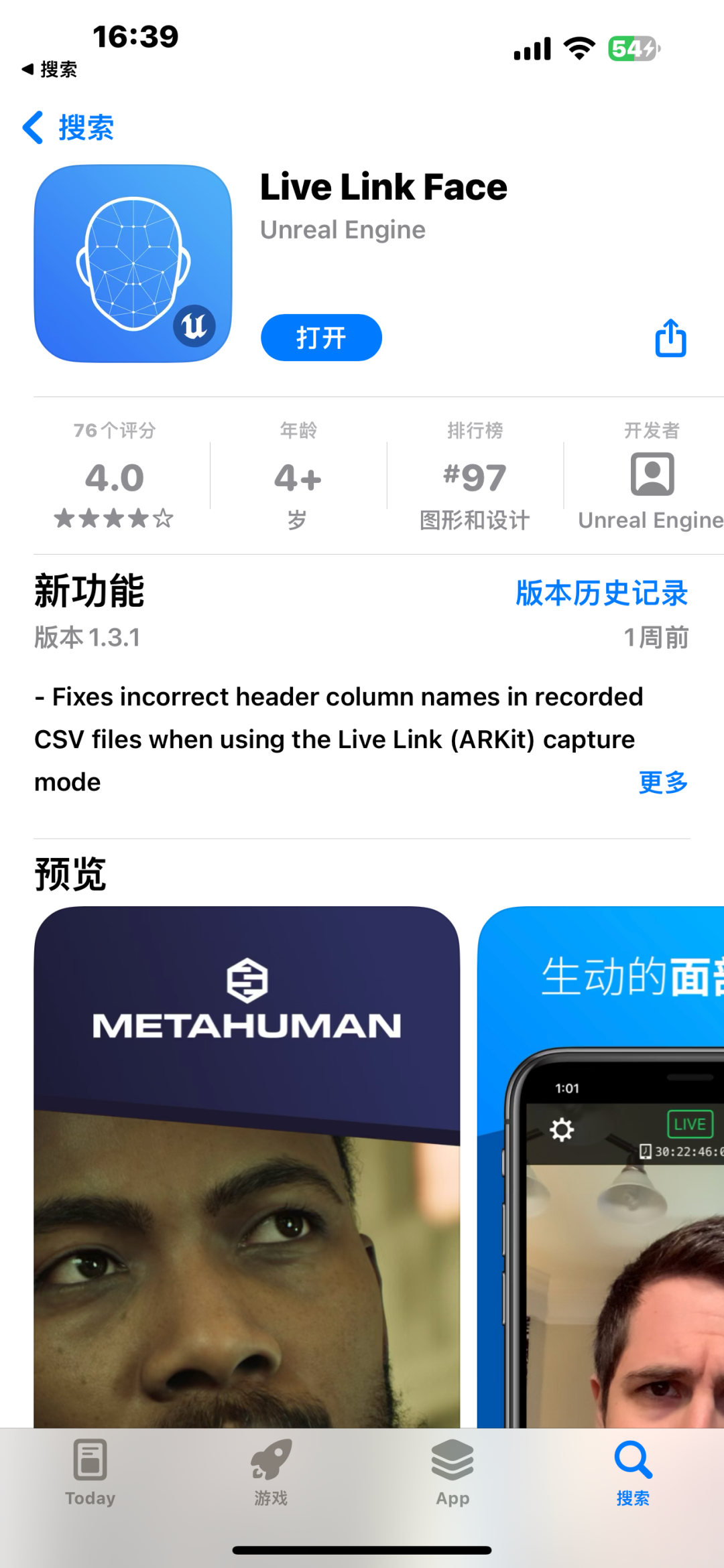 在App store商店里下载LIve Link Face软件