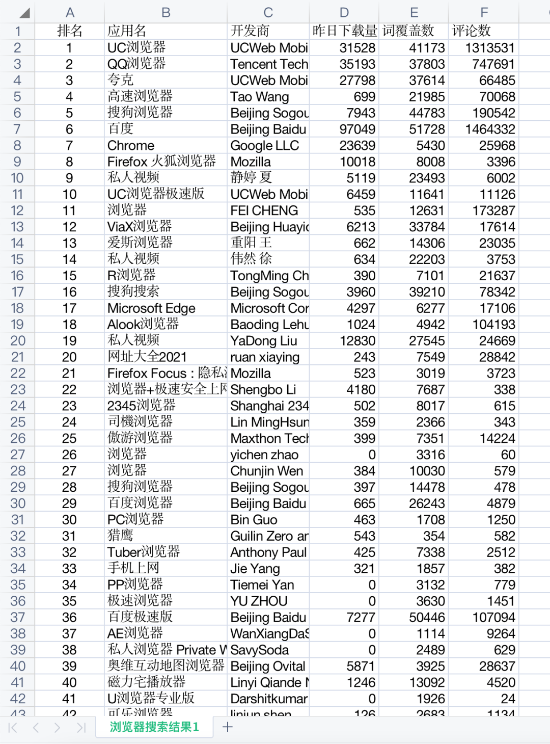 所以我爬取了App Store中当前排名前240名的所有浏览器数据,帮大家筛选出真正好用的浏览器。