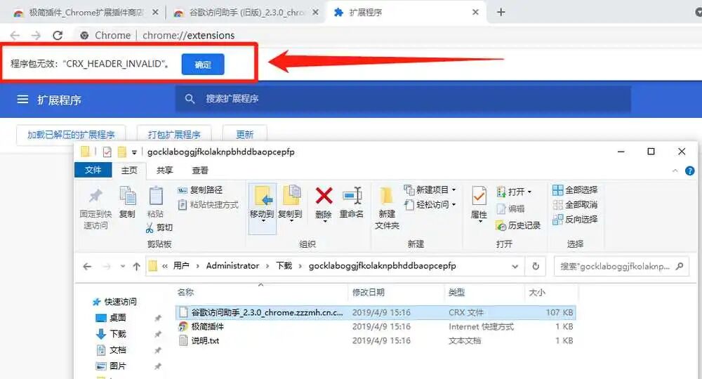 如果你在安装过程中出现下图中的错误程序包无效 CRX_HEADER_INVALID说明你想要安装的插件超过2年以上没更新了,很可能已经被谷歌下架了。推荐是直接放弃这个插件,换一个功能类似的试试。如果你一定要安装上去看看里面什么样的话把刚才下载的