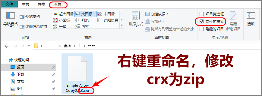 先将crx扩展名修改为zip。如果你下载的本来就是压缩格式,那么就省略这一步。