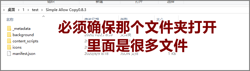 2、解压后确保打开文件夹其中就是这种很多文件的状态,而不是打开simple allow copy内部依然是一个simple allow copy文件夹的这种状态。