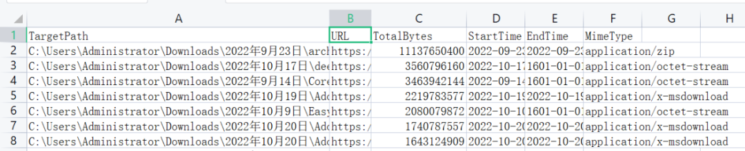 还有下载的记录,文件类型、名字与大小,下载到哪里和从哪里下载的,都能让你清楚的知道自己做了啥。