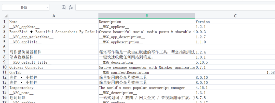 看列表名字就能看出来信息还是很丰富的,像是插件的信息也有,这还能排查BUG,像是下图中的演示设备就不知道啥时候,抽风装上了两个壹伴公众号助手,这要是在编辑文章的时候,指不定会出现什么小问题。