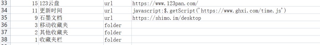 创建的书签、或者不是地址形式的小书签和书签目录结构,基本上使用书签的记录都在这里了,创建时间啥的都精确到秒和时区。