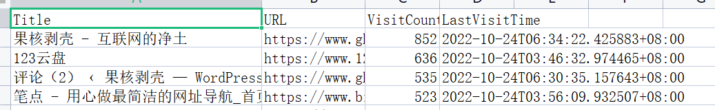 自己的历史访问记录等等,会以访问次数自动排序好,不管你访问过几次都能找到,会有详细的页面地址和近期访问时间。