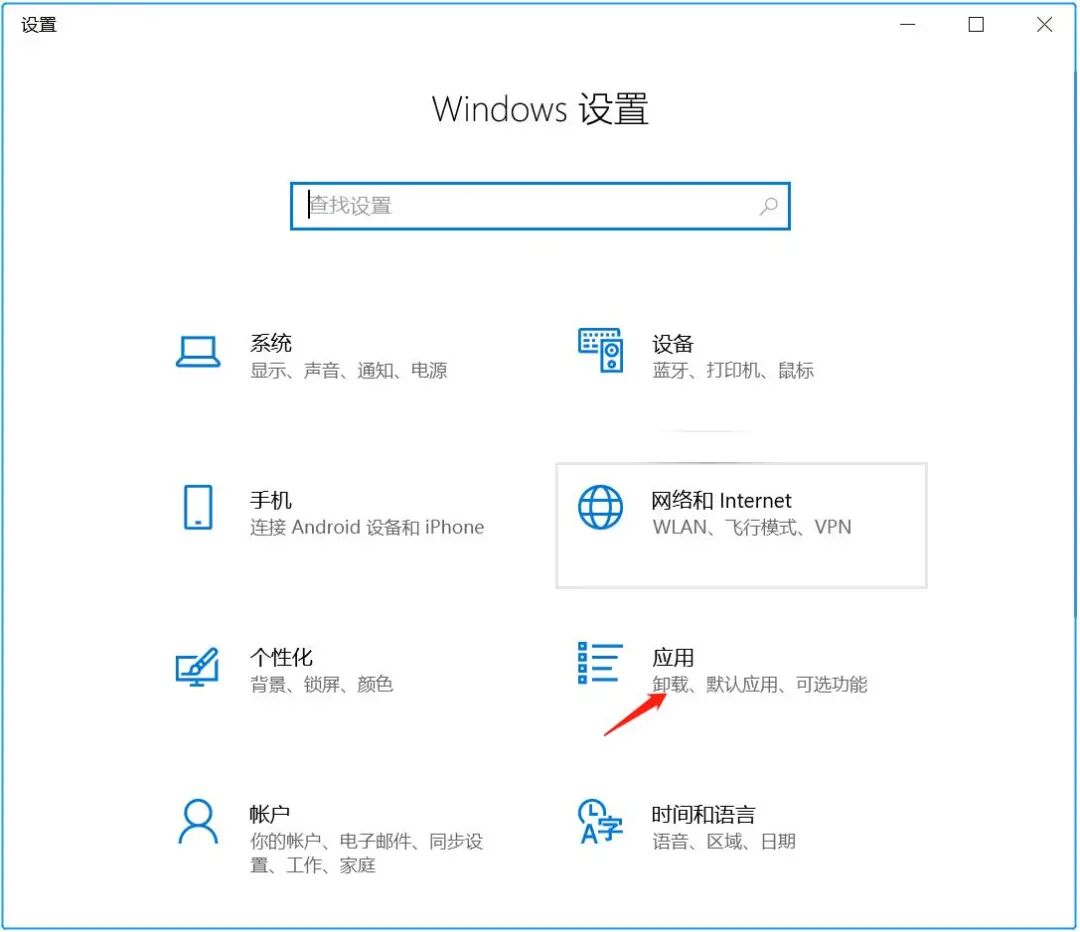1.按住win+i,在设置对话框中,选择应用。