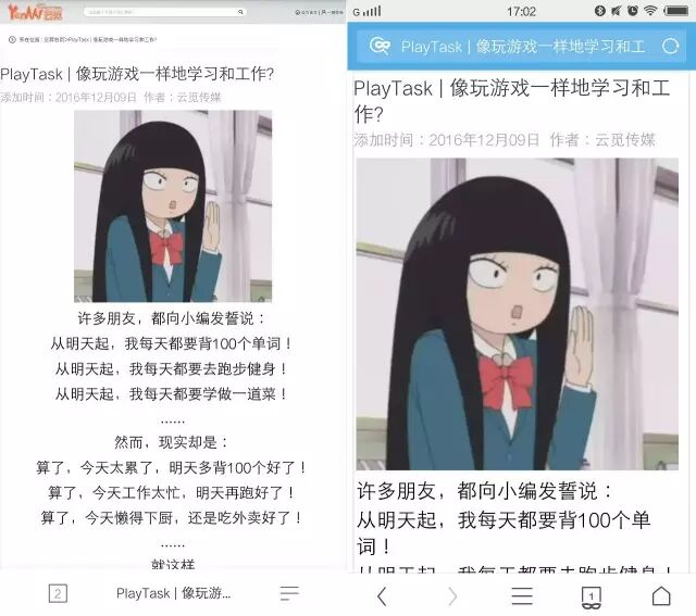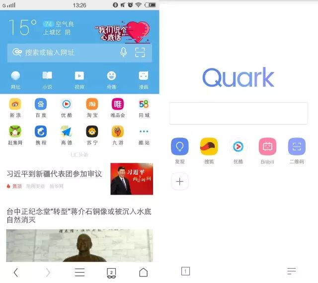 (Quark和UC的浏览体验对比)