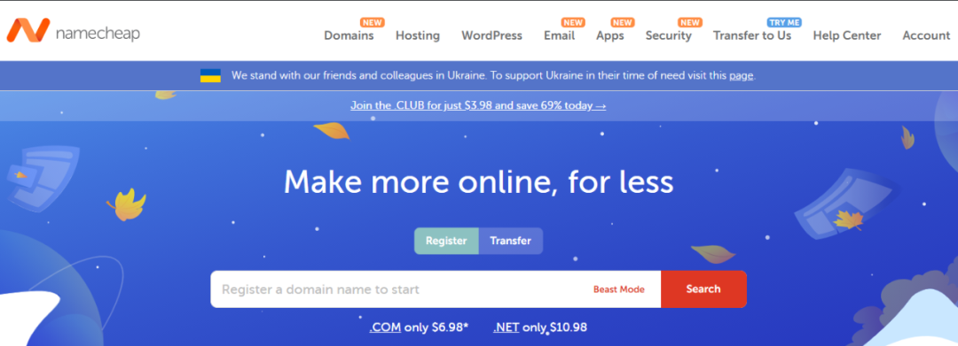 一、NameCheap(https://www.namecheap.com/)这家服务商价格比较低,每年的黑色星期五往往有很大的折扣。现在它不仅仅出售域名了,同时经营主机等业务了。