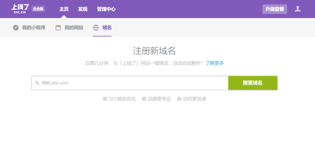 能够注册域名的站点很多,阿里云、GoDaddy、上线了,都可以注册域名。以「上线了」sxl.cn为例,在官网主页切换到域名栏目,在搜索框里输入你想要注册的域名。若显示还未被注册,你就可以注册它。然后选择你要注册的年限,再按要求填写域名持有者/实名认证信息,付费即可(域名购买费用一般是几十块钱一年)。
