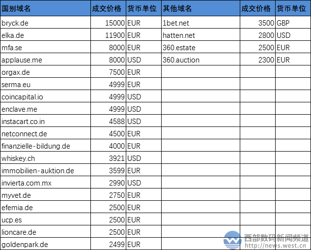 更多域名交易,详见下表: