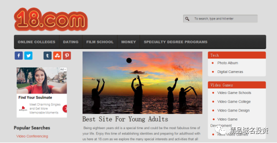 注册于1998年5月8日,现为国外一特色网站域名,是关于18岁青少年的学习、娱乐、社交的综合性网站。