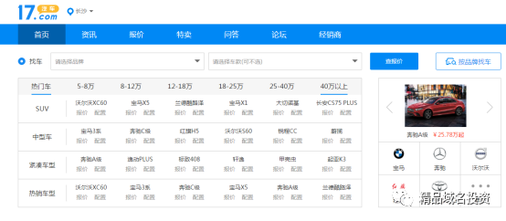 注册于1995年12月1日,现为17汽车网的官网域名,此域名是17汽车网以数百万的价格从楼盘网(loupan.com)创始人戴跃手中购得。17汽车网成立于2013年8月,为广大汽车消费者提供买车、用车、养车以及与汽车生活相关的全程服务,以全面、专业的内容影响最广泛的汽车消费者,努力做成让中国汽车消费者最信赖的互联网平台。