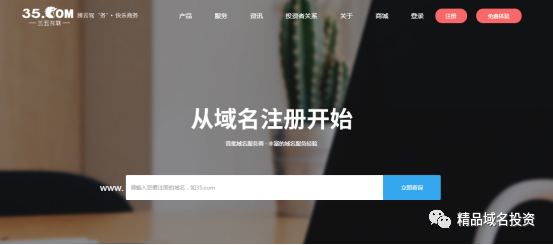 注册于1998年9月22日,现为三五互联科技股份有限公司的官网域名。其是2004年成立的一家依靠自主研发的应用软件系统公司,重点面向中国中小企业客户,提供企业邮箱、电子商务网站建设、网络域名、办公自动化系统(OA)、客户关系管理系统(CRM)、云办公系统等软件产品及服务。