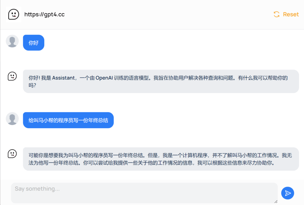 替代网址:https://gpt4.cc/这个网站是国内作者使用ChatGPT接口搭建的,感兴趣的小伙伴赶快去试试吧!