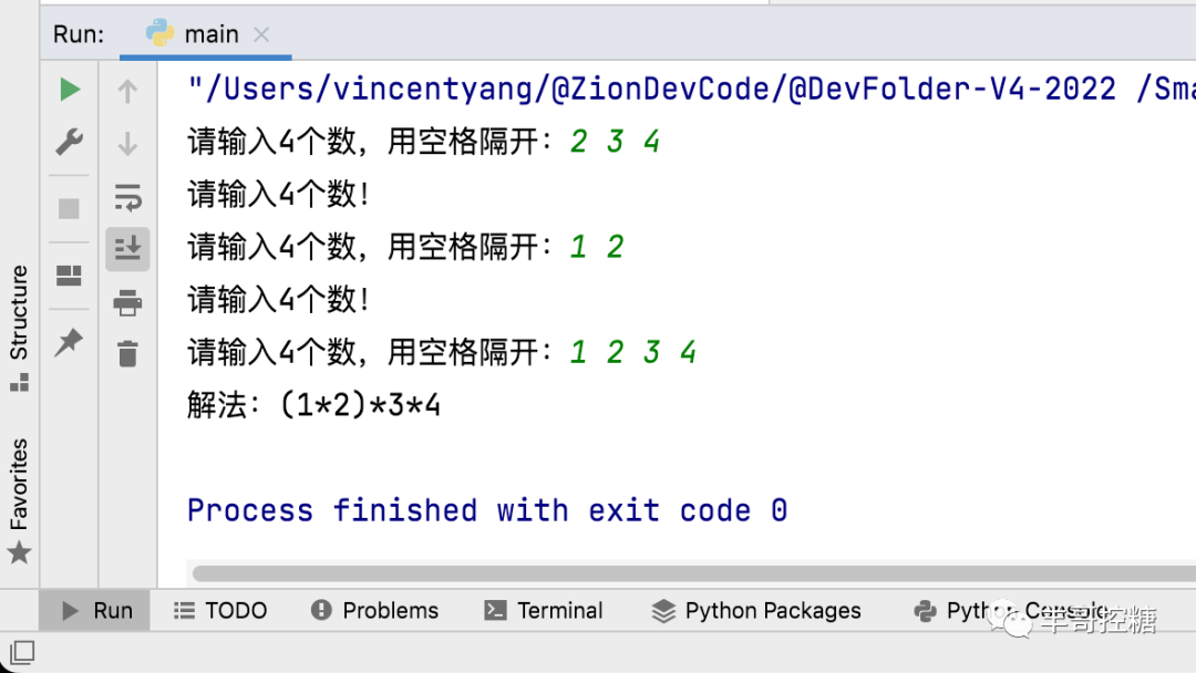 点击执行,按照输入 1 2 3 4,给出答案 1*2*3*4。完美。