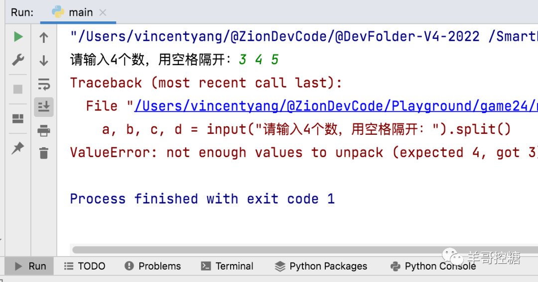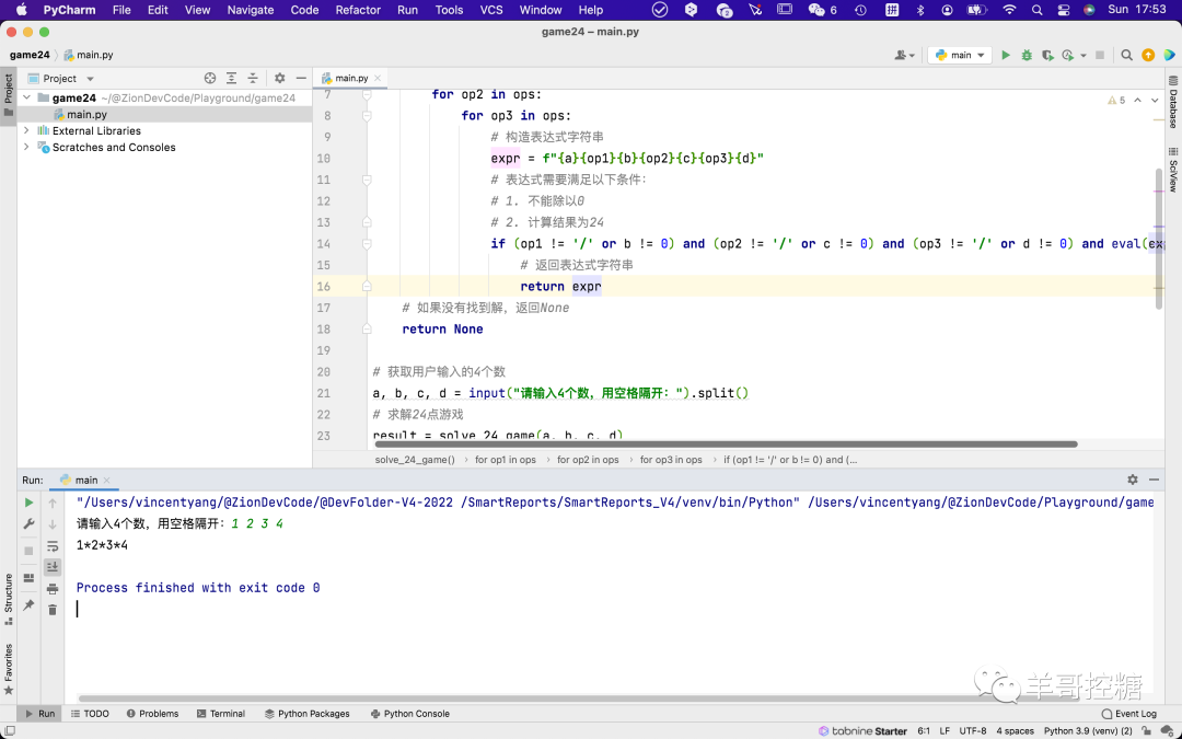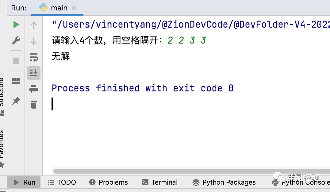 羊哥:写一段Python语言,做24点游戏,提示用户输入4个数,你帮着算出24点。如果不能输出 无解。