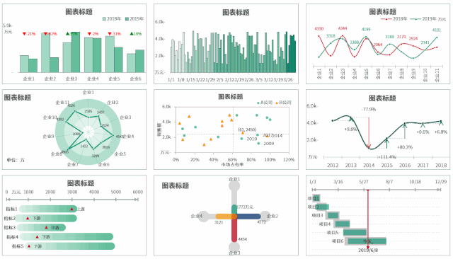 图表自动切换主题色的效果,图表气质瞬间变化,用更多变的图表模板,为您提供多1种美的选择。