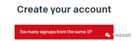 填入相关信息后,又报其它错了。Too many signups from the same IP