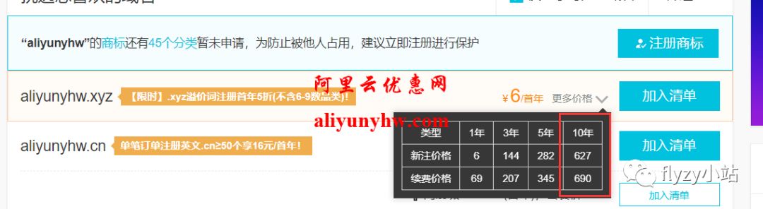 阿里云.xyz域名优惠规则